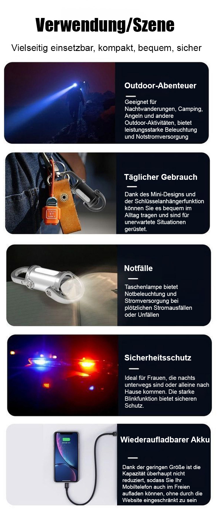 Nur noch 20 Plätze frei für 50 % Rabatt! Zwei-in-eins-Schlüsselanhänger-Taschenlampe: Leuchtet ein halbes Fußballfeld in einer Sekunde aus und dient gleichzeitig als Powerbank.